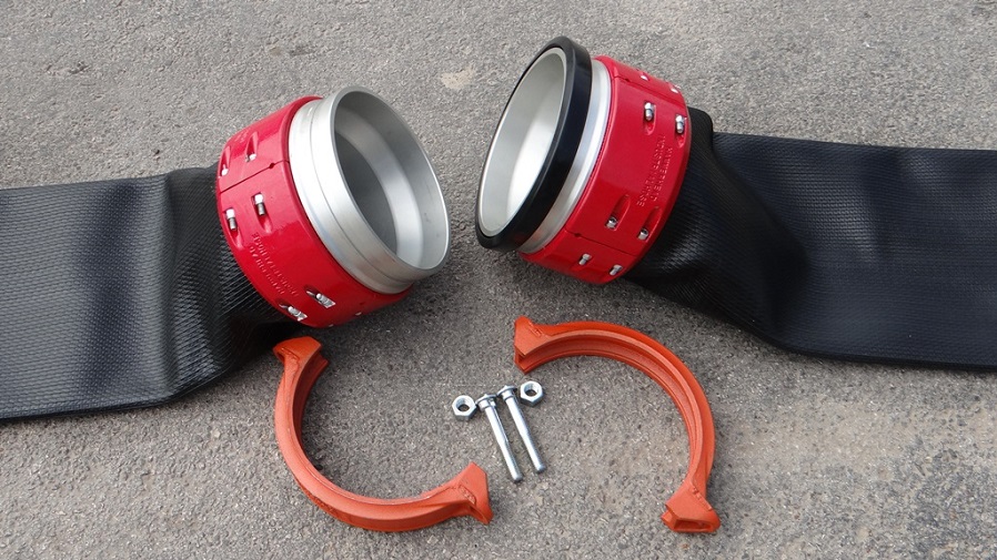 Применяется для сборно-разборных трубопроводов с высоким давлением. Состоит из двух наконечников, обжимных хомутов из алюминия, соединяемых муфтой из чугуна с резиновым уплотнительным кольцом.